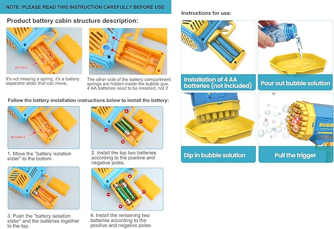 طريقة اللعب: صب محلول الفقاعات في صينية السائل، غمس طرف جهاز吹 الفقاعات، وشاهد كيف تطير الآلاف من الفقاعات!